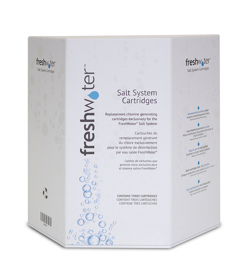 The FreshWater Salt System offers an affordable, hassle-free way to maintain crystal-clear spa water for up to a year.* Its titanium cartridge, discreetly housed within the spa, is both maintenance-free and easy to replace in seconds—no tools required. Each pack includes 3 replacement filters, ensuring simple, ongoing water care.