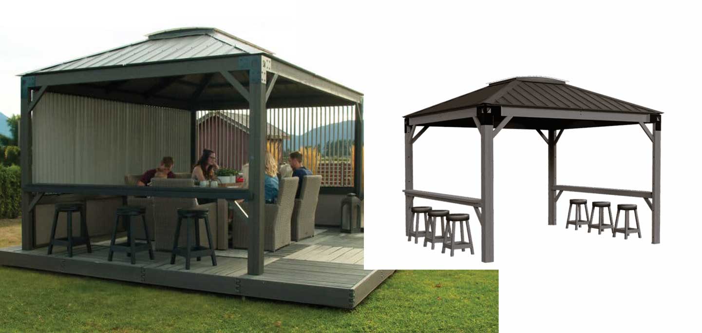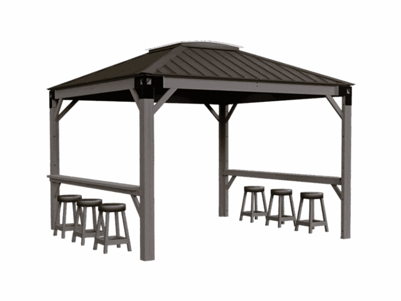 The Visscher Savannah 11×11 offers the ideal balance of style, strength, and comfort. Built from double-coated SPF lumber with a UV-resistant skylight and metal roof, it’s made to last. Add optional bars, drapes, or louvers to create your ultimate backyard entertainment and relaxation space.