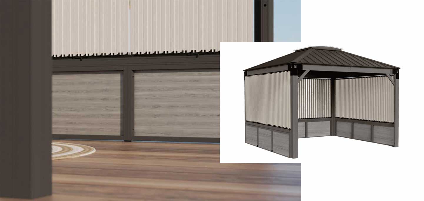 Visscher’s base panel walls are crafted for durability and style, they offer the perfect solution for creating a secluded and sheltered space. *Base wall panels can only be added after the Louver Panels are installed.